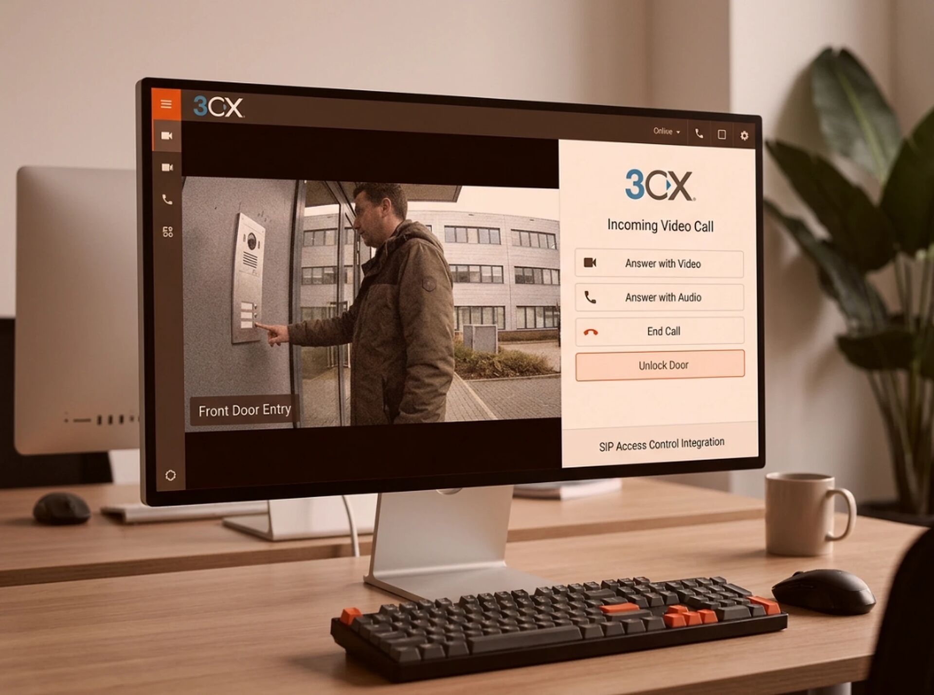 Ce que ça permet : répondre à un visiteur depuis le bureau, depuis un téléphone de bureau 3CX, depuis Teams si le matériel le supporte, ou depuis une application mobile. Les droits d'accès et les journaux peuvent remonter dans la même interface que le reste du contrôle d'accès.